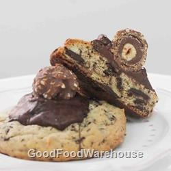 Indulge in these delicious NY Chunky Ferrero cookies, handcrafted artisan treats filled with rich dark chocolate chips and topped with decadent chocolate and Ferrero Rocher.